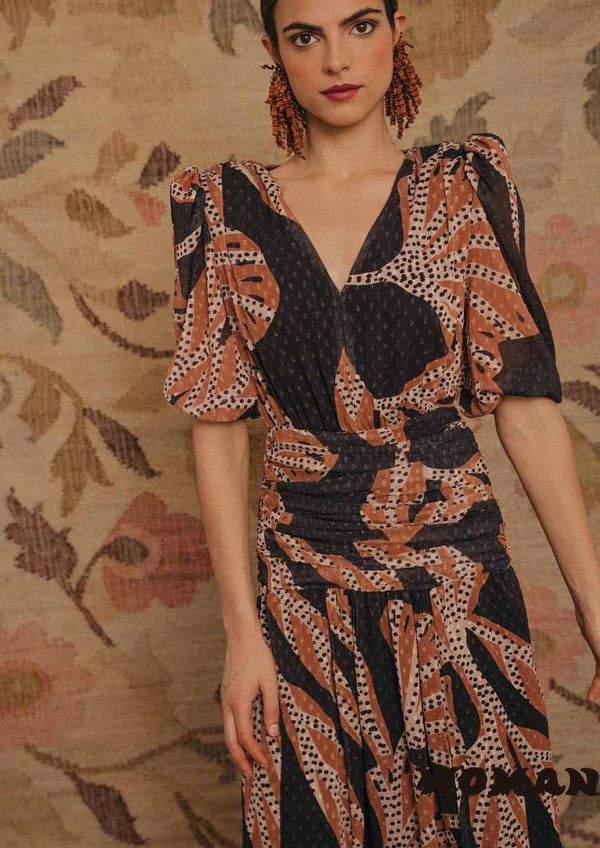 Décolleté en V, manches bouffantes, découpe à la taille… tout dans cette robe est pensé pour sublimer votre charme naturel . C'est sans conteste un excellent exemple de la virtuosité de la couture espagnole.