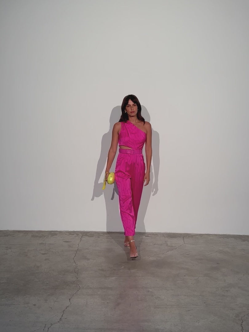 Deslumbra en tu próximo evento con el mono MIOH asimétrico con abertura en la cintura.