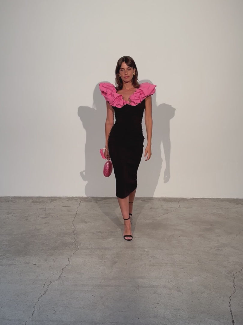 Deslumbra en tu próximo evento con el Vestido MIOH Tropez bicolor en rosa y negro.